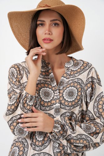 • Desenli Uzun Tesettür Elbise 2585 C Bej